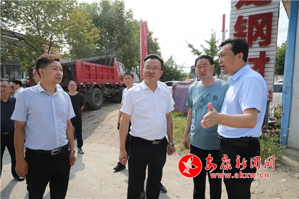 劉建平一行實地在棗園路防洪閘門、城東農貿市場、紅衛橋、寶業農貿市場等地,查看周邊環境衛生整治及基礎設施改善等情況,現場發現問題,研究解決措施,交辦任務,推動落實。