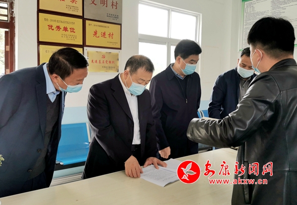 市長武文罡(左二)在嵐皋縣民主鎮新喜村村委會檢查脫貧攻堅成果鞏固情況