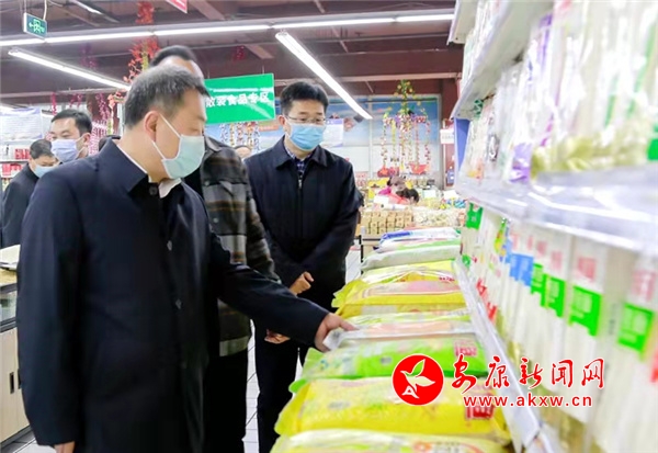 (市長武文罡在喜盈門超市南環(huán)路店實地查看米面等生活必需品供應情況)sRW安康新聞網(wǎng)