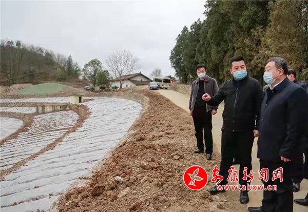 (武文罡在漢濱區(qū)瀛湖鎮(zhèn)郭家河村調(diào)研高標(biāo)準(zhǔn)農(nóng)田建設(shè)情況)