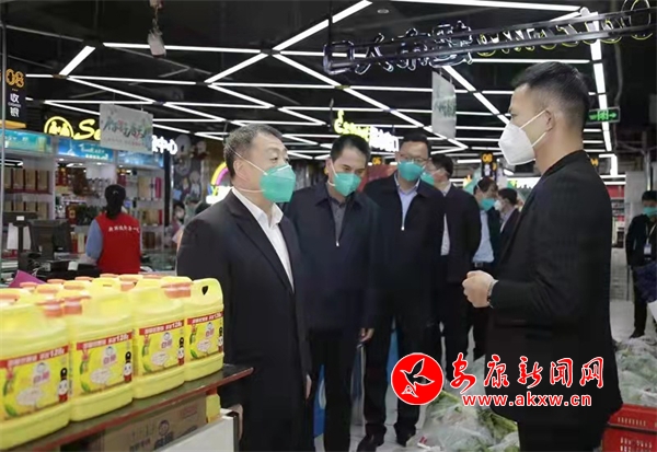 武文罡一行在紫陽縣城關鎮會仙橋社區萬友超市檢查生活物資供應情況。記者 吳單 攝RZE安康新聞網