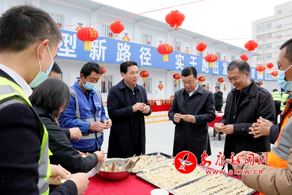 在陜建十二建高新區路網項目工地,趙俊民一行親切看望響應號召留守安康、就地過年的施工人員,并同大家一起包餃子、吃團年飯,共同分享迎新納福的喜悅。趙俊民勉勵大家,無論來自何方、家在何處,都是推動發展的建設者、參與者、見證者,希望大家在安康舒心過節、安心工作。各級各部門要強化政策落實和保障措施,為就地過年人員提供良好的工作和生活環境,讓他們以安康為家,歡歡喜喜地過個幸福年。hEi安康新聞網