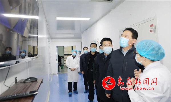 在市中心醫院北院區,趙俊民實地查看市核酸檢測基地核酸采集、檢測等工作。他強調,要不斷提高核酸檢測能力和效率,合理擴大檢測范圍,做到重點人群“應檢盡檢”、重點行業“適時抽檢”、一般人群“愿檢盡檢”。要強化醫院入口的管控,發熱門診、消毒隔離以及人員排查、陪護等的管理工作,防止院內感染事件發生。