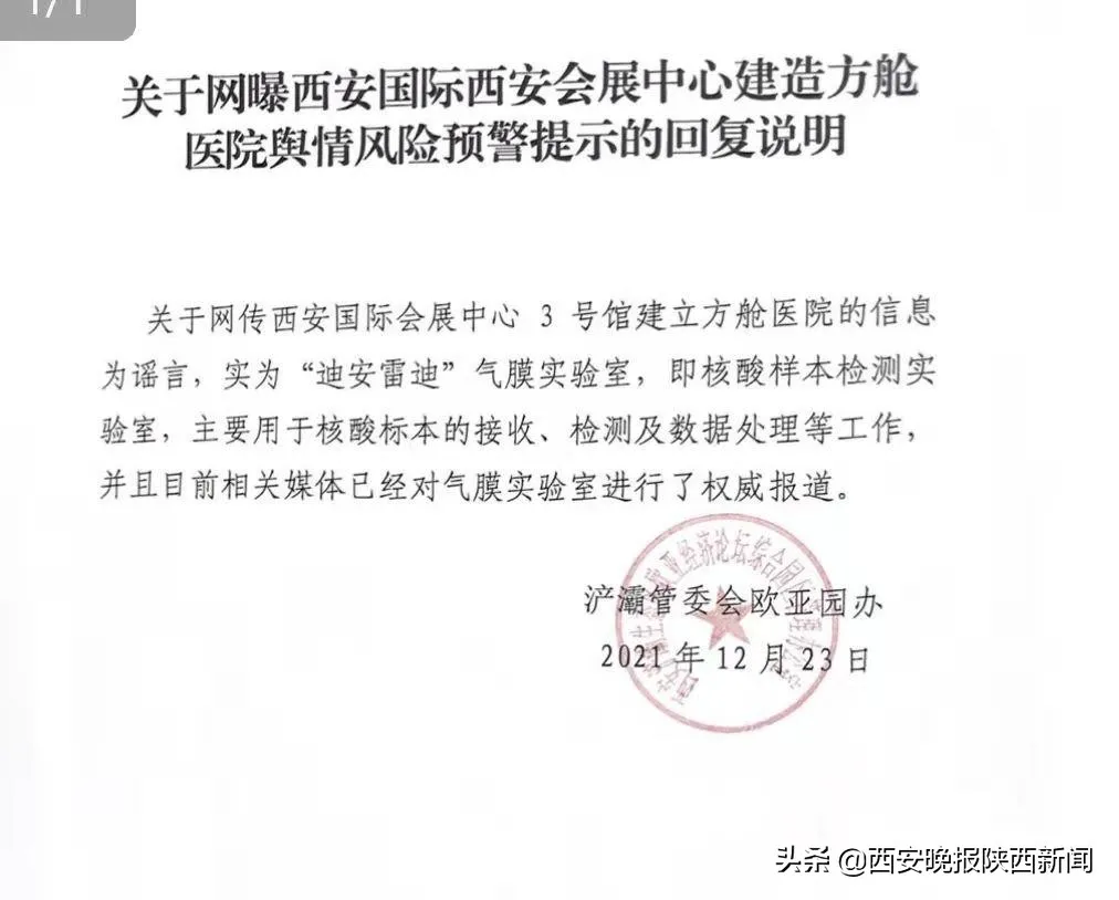 近日,短視頻平臺有網民發視頻稱“西安國際會展中心正在建方艙醫院”,經核實,該信息為謠言,實為“迪安雷迪”氣膜實驗室,用于核酸檢測工作。ZVg安康新聞網