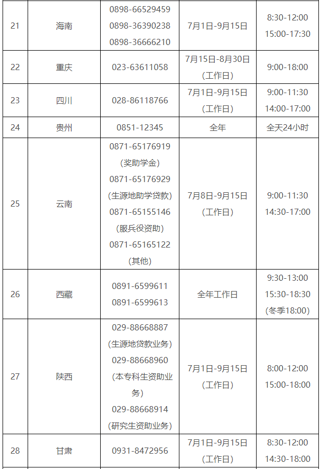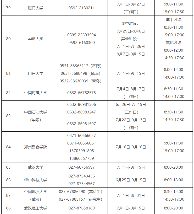 各省(自治區、直轄市)和中央部門所屬高校同步開通了熱線電話,電話號碼與開通時間可查看匯總表。