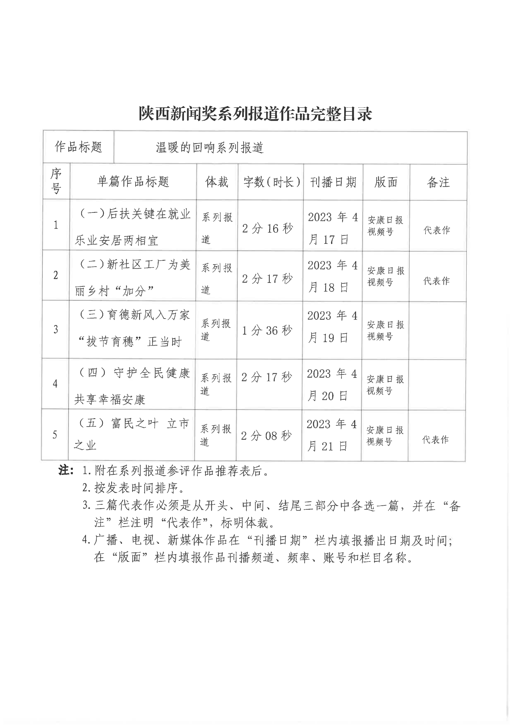 經過1月30日編委會推薦、社黨委研究決定,擬推薦以下4件新聞作品參評2023年度“陜西新聞獎”。公示時間從2024年3月6日至2024年3月12日,公示期為5個工作日。如有不同意見,請向安康日報社機關紀委、新聞管理部反映。RAj安康新聞網
