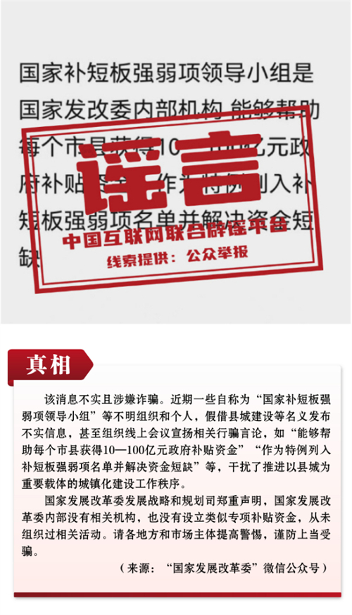 謠言2:有“國家補短板強弱項領導小組”并設立專項補貼?