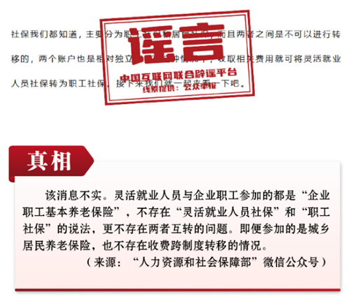 謠言1:收費可將靈活就業(yè)人員社保轉為職工社保?