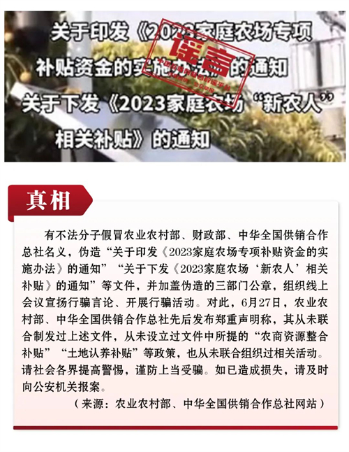 謠言1:三部門聯合發文將發放家庭農場等專項涉農補貼?
