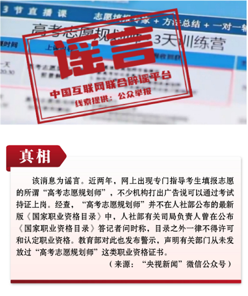 謠言3:培訓3天就能拿到“高考志愿規劃師”證書上崗?