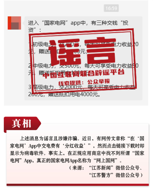 謠言1:在“國家電網”App中交電費有分紅收益?