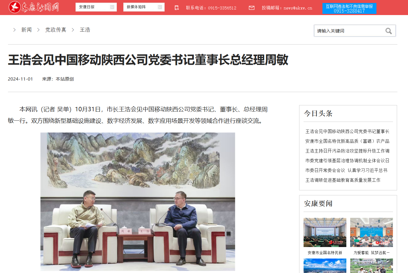 《王浩會(huì)見(jiàn)中國(guó)移動(dòng)陜西公司黨委書記董事長(zhǎng)總經(jīng)理周敏》(2024-11-01發(fā)布)