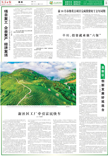 項目復工 企業復產 經濟復活——我市重點項目引領復工復產復商復市回眸(2020年11月20日 2版)