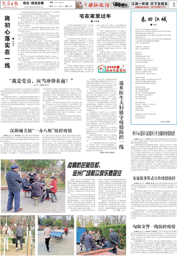 積極搭建民生服務平臺,幫助群眾解決實際困難。2020年,本報堅持正面宣傳,開設“眾志成城抗擊疫情”欄目,深入宣傳、充分報道黨中央重大決策部署、聯防聯控措施、防控疫情的成效,使全市群眾在堅定信心的同時,興起了群防群控熱潮。充分發揮服務群眾、引導群眾功能,先后開設“2020春我的宅家筆記”等欄目刊發稿件30多篇,引導市民不盲目跟風不過度防護,有效及時疏導公眾焦慮恐慌等情緒,凸顯了主流媒體的傳播力影響力和公信力。