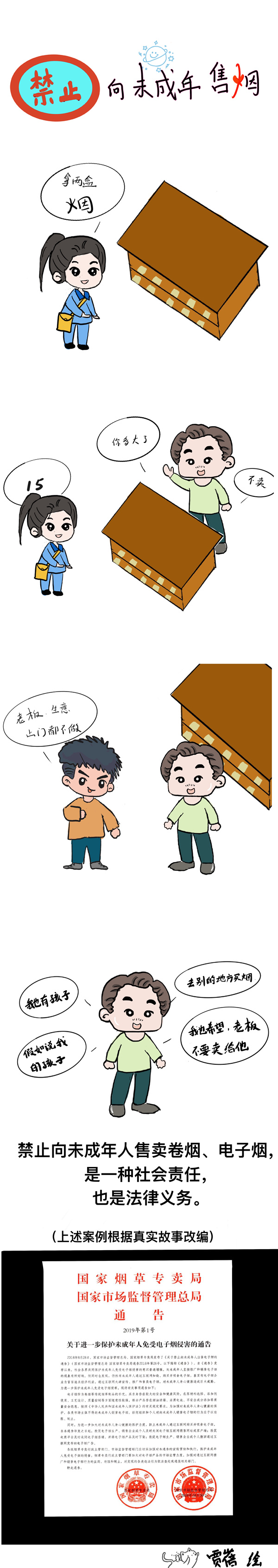 《中華人民共和國未成年人保護(hù)法》中提到禁止向未成年人售煙,那么生活中遇到這些情況我們該怎么做呢?請看下列漫畫。(賈蓓 繪制)