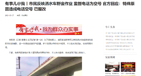 安康新聞網履行媒體輿論監督職能,聚焦民生問題,刊發《私家車違停公交站停車站點》《有事兒@我 | 一小區因停電電梯停運 業主爬30層樓梯上下班》等監督性新聞稿件;同時積極開展調查性報道,追蹤事實真相,發布《記者調查:安康電動車停車和充電現狀》《市民反映灑水車野蠻作業 監督電話為空號 官方回應:特殊原因造成電話空號 已整改》等一批原創新聞,反映群眾呼聲,推進問題解決,體現地方黨媒的責任與擔當。