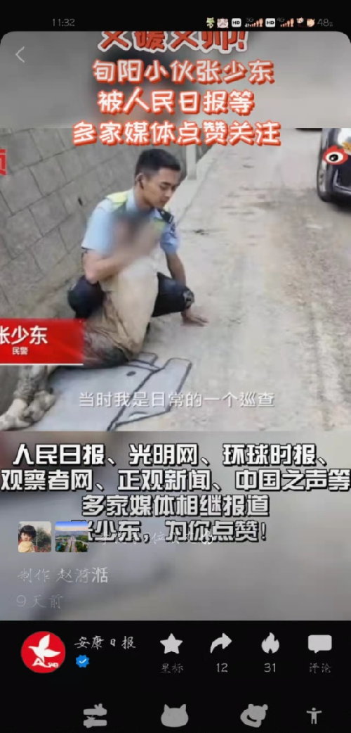 《旬陽小伙張少東被《人民日報》等多家媒體點贊關注》