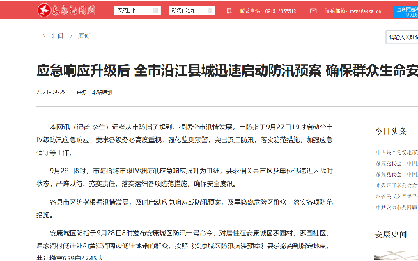 在災難和事故報道中,安康新聞網秉承“人民至上、以人為本”理念,如在《應急響應升級后 全市沿江縣城迅速啟動防汛預案 確保群眾生命安全》報道,重點聚焦應急響應升級后全市沿江縣城迅速啟動防汛預案情況,確保人民群眾生命安全。同時安康新聞網還針對一些公共安全事件或突發事件,及時發布防御知識和相關科普內容。