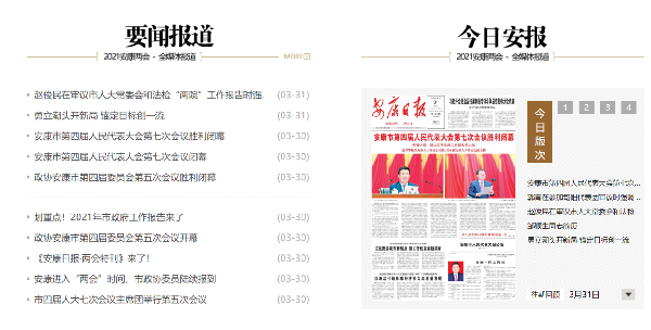 2021年安康“兩會”期間,安康新聞網精心策劃推出《聚焦兩會》《兩會視頻》《圖說兩會》等“兩會”專欄專題。采編人員群策群力,運用圖文、視頻等形式宣傳兩會聲音。創新傳播形式,讓兩會的聲音傳播得更廣更遠。安康新聞網站負責搭建數字閱報機及配套建設加強了安康“兩會”宣傳展示效果,取得良好社會影響。