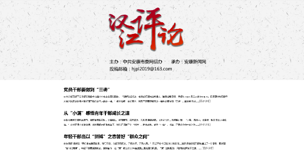 安康新聞網堅持政治家辦網宗旨,牢牢把握正確政治方向,堅持正確輿論導向,把圍繞中心服務大局、傳播好聲音、傳遞正能量作為首要職責。