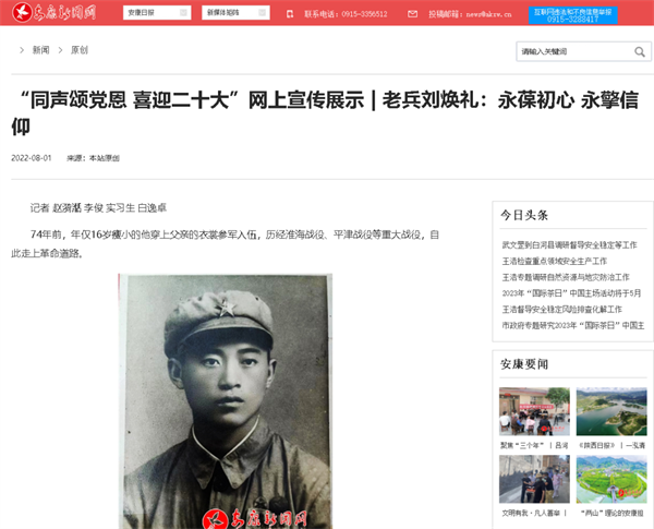 安康新聞網始終堅持傳達正確立場、觀點、態度,持續做好正能量典型宣傳,做有態度、有溫度的新聞精品,發布如《“同聲頌黨恩 喜迎二十大”網上宣傳展示 | 老兵劉煥禮:永葆初心 永擎信仰》《旬陽老黨員收集千余件紅色藏品》《活出尊嚴的120個生命》等優質稿件。ai5安康新聞網