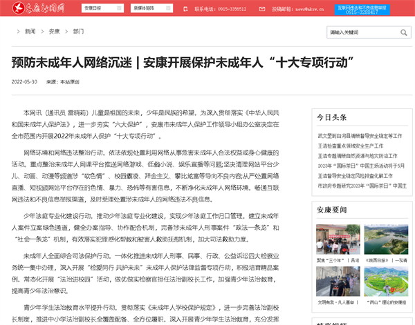 關注民生熱點,彰顯為民情懷。積極做好民生政策類宣傳報道,圍繞教育、醫療、就業、食品安全、養老等民生熱點,注重反映少數民族、婦女、兒童、老年人、殘疾人等意見呼聲,刊發了《預防未成年人網絡沉迷 | 安康開展保護未成年人“十大專項行動”》《民族團結之花常開長盛》《寧陜:為癱瘓老人上門辦證 譜寫警民暖心故事》等報道。ai5安康新聞網