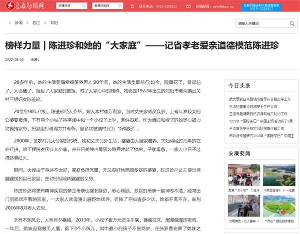 堅持以人為本報道理念,充分凸顯人文精神。報道《榜樣力量 | 陳進珍和她的“大家庭”——記省孝老愛親道德模范陳進珍》《安康市第三屆自強不息道德模范王庭德開展勵志宣講報告會》《孫自立:自強同奔共富路》等,啟迪思想,溫潤心靈,詮釋真善美。ai5安康新聞網