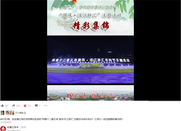 深化融合創新,全力打造高附加值文化創意產品。2022年第二十二屆中國安康漢江龍舟節期間,由安康日報社統籌承辦“國風·漢江辭匯”主題公益演出活動,安康新聞網全力配合,落實晚會執行、線上直播、采風活動全程宣傳,“國風·漢江辭匯”演出全網現場直播,點擊量達到100W+。活動還引發全網多家媒體爭相報道。截至目前,包括人民日報、中央廣播電視總臺《藝術傳承》官網、今日頭條、北京在線、山東熱線等70余家中省市媒體單位陸續轉載報道。ai5安康新聞網