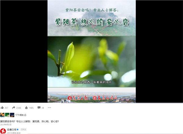 2022-04-02《紫陽茶安全嗎?專業人士解答:紫陽茶,放心購,安心嘗!》截圖ai5安康新聞網