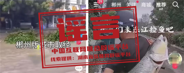 7月28日,某短視頻平臺出現兩段視頻,一段是城市街道被洪水淹沒并配文“郴州版城市取經”的視頻;另一段是暴雨過后在積水中抓魚并配文“友友們來東江撿魚吧”的視頻。經湖南郴州網信部門核實,相關視頻系網民惡意拼湊,郴州并未出現視頻所述情況。網信部門已將謠言線索移交公安部門依法處置。