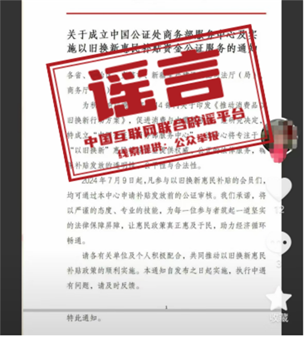 辟謠:商務部發布聲明:從未發布《關于以舊換新惠民款補貼發放的公證通知》