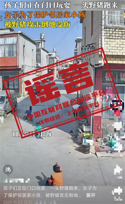 真相:近日,有網民在其自媒體賬號發布一條“女子為保護鄰居孩子被野豬攻擊”的短視頻,引發一些媒體紛紛轉發,并聲稱此事發生在上海市青浦區。經上海辟謠平臺調查發現,該視頻并非拍攝自上海。在首發視頻中,并沒有任何畫面、文字、說明等表示該事件發生在上海,只是發布者的定位在“上海”,但一些媒體在轉發時,“想當然”地以為這件事發生在“上海”,于是在視頻的標題或內容中突出了“上海”。隨著轉發者越來越多,“上海市郊野豬攻擊人”的錯誤信息也越傳越廣。目前,該視頻的首發者已刪除相關視頻并公開澄清事件真相。(來源:“上海網絡辟謠”微信公眾號)