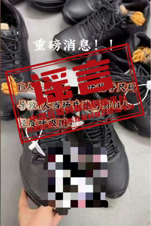 真相:近日,有網民在某平臺上發布視頻稱:“重磅消息。15人在龍口某倉庫搶奪尺碼,導致1人當場昏迷,另外14人輕度呼吸困難,天降之禍”,引發社會關注。山東龍口網信部門巡查發現該情況后立即聯合當地公安部門啟動調查程序。調查發現,此視頻發布者系當地品牌運動折扣店店主劉某。圖中“搶奪尺碼”是指斷碼甩賣的鞋子,有時商家為吸引顧客會搞類似的優惠活動。而劉某為博取流量,吸引關注,自行編造并發布了上述謠言。目前,龍口公安已依法對劉某進行行政處罰。(來源:山東互聯網聯合辟謠平臺)