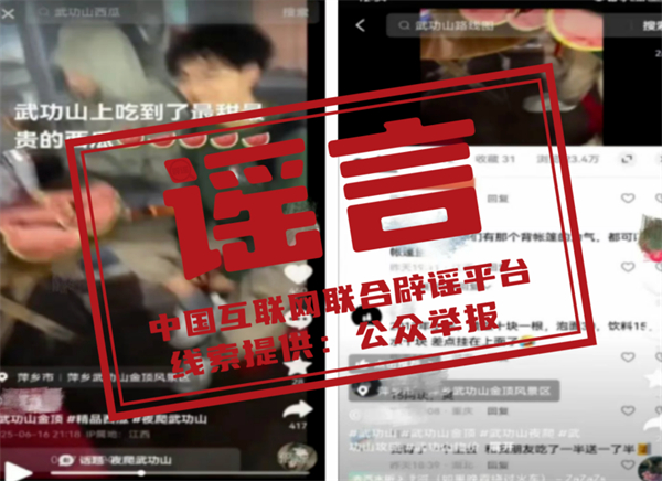 真相:近日,有網(wǎng)民在短視頻平臺發(fā)布“江西萍鄉(xiāng)武功山景區(qū)存在‘一錘子買賣’‘天價西瓜’”的視頻,引發(fā)社會關(guān)注。經(jīng)查,視頻中 “賣西瓜” 的男子實(shí)為旅行社組織的武功山景區(qū)游客,途中接受視頻發(fā)布者邀請參與拍攝了一段“賣西瓜”的視頻。該西瓜系旅行社同行人員所帶,并非如視頻所說在景區(qū)內(nèi)購買,景區(qū)也不存在網(wǎng)傳的“18元泡面”、“240元西瓜”等情況。目前,公安機(jī)關(guān)已對造謠者作出行政拘留十日的行政處罰。(來源:“公安部網(wǎng)安局”微信公眾號、“江西網(wǎng)警”微信公眾號)