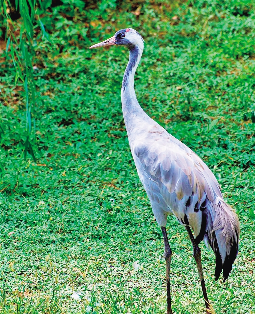 別名千歲鶴、玄鶴、番薯鶴、普通鶴、元鶴。通體羽色幾乎全為灰色;前額和眼先黑色,頭頂裸區(qū)部分呈朱紅色,喉、前頸和后頸灰黑色;自眼后有一道寬的白色條紋伸至頸背;眼虹膜紅褐色或深紅色;嘴暗綠色,先端顏色略淡;脛、跗跖及趾均為灰黑色。(來源:安康市林學(xué)會(huì))wsM安康新聞網(wǎng)