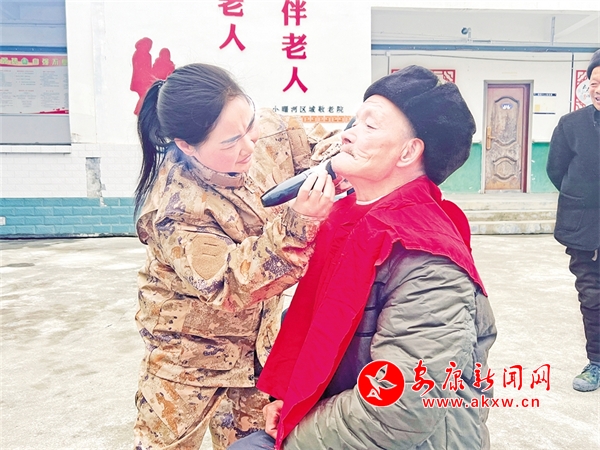 3月4日,鎮坪縣曙坪鎮民兵隊伍與志愿服務隊伍攜手走進曙坪敬老院,開展學雷鋒志愿服務活動。薛榮瑩 攝T9b安康新聞網
