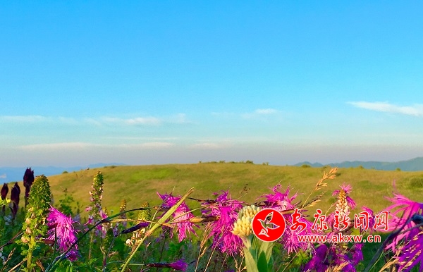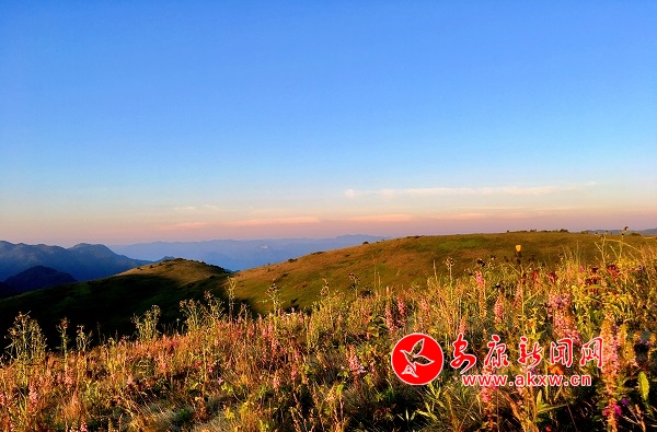 甸內不知名的小花爭相綻放。遠觀整個草甸呈現出一片朦朦朧朧的粉綠,置身其中,會感覺到一種無比浪漫的溫馨。iYr安康新聞網