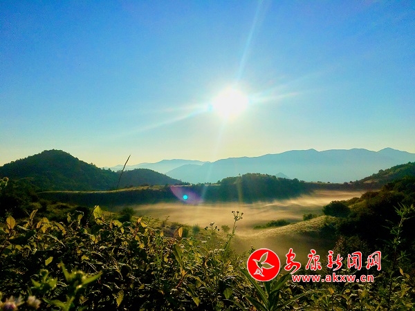 初陽下,萬道金光里,襯托著天邊露白,云霧徘徊山巒之間久久不散。iYr安康新聞網