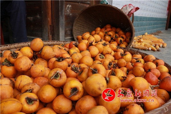 鄉(xiāng)村秋景,家家戶戶掛柿子