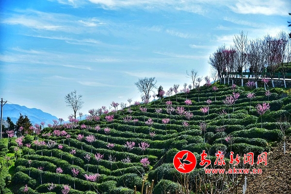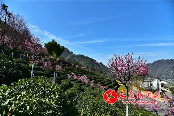連日來(lái),春光明媚的平利長(zhǎng)安洪福茶山風(fēng)景宜人,春梅、杏花競(jìng)相開放。(攝影:王韜)