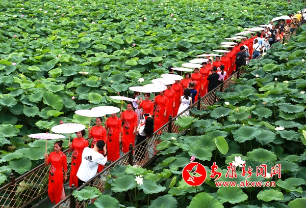 近日,石泉縣池河鎮五愛村的荷塘內,不同種類的荷花競相開放、爭相斗艷、清香縷縷,觀景平臺、玻璃棧道和紫藤花長廊更是增添了幾分情趣,前來觀光的游客絡繹不絕,或是祖孫幾代漫步荷塘,或是親朋好友信步棧道,或是攝影愛好者坐等芙蓉出水。(通訊員 任國路 攝)h3u安康新聞網