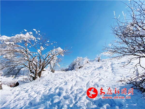 陽光透過樹縫,灑向白茫茫的草甸,萬物潔凈如新。站在草甸之上,環(huán)顧四周,美景盡收眼底,山舞銀蛇襯之藍(lán)天雪地,讓人嘆為觀止。bvs安康新聞網(wǎng)