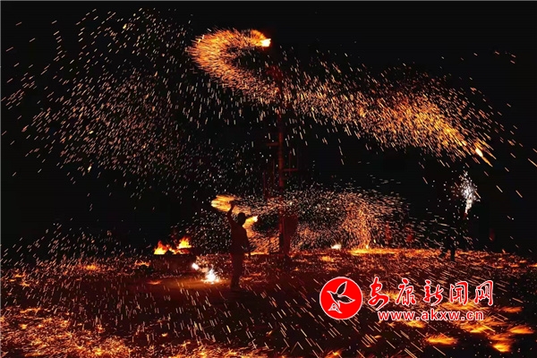 正月十五元宵佳節(jié),漢濱區(qū)大同鎮(zhèn)魯家村火龍舞獅表演鬧紅元宵夜。(陳榮斌 葉子怡 攝)