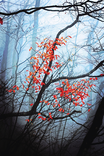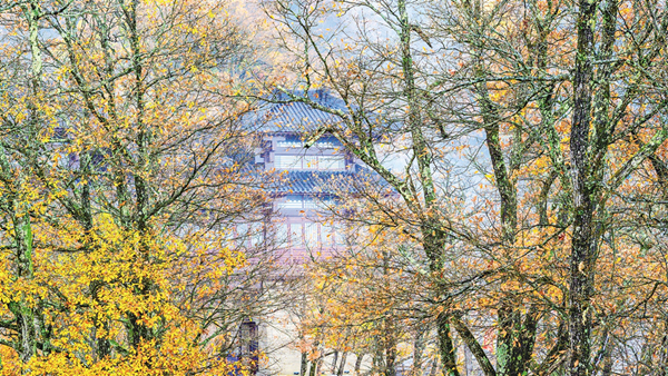 入冬之后,石泉云霧山鬼谷嶺景區(qū)的樹葉紅了,登上山頂遠(yuǎn)眺群山,疊翠流金,云霧縹緲,宛如人間仙境。