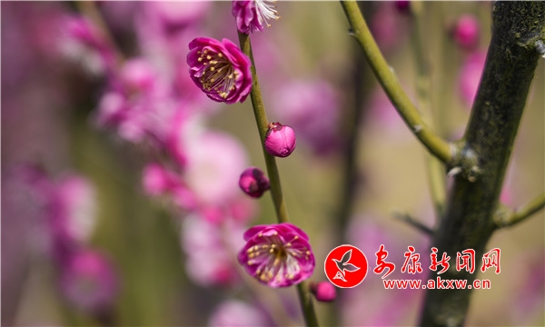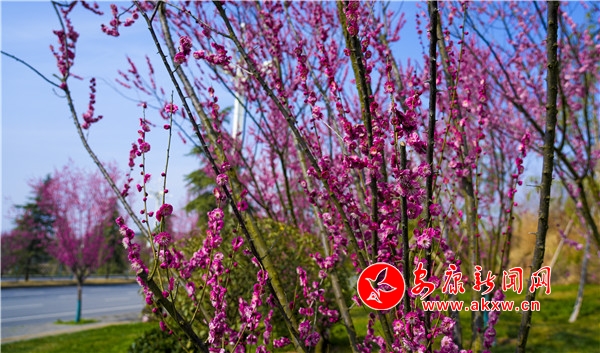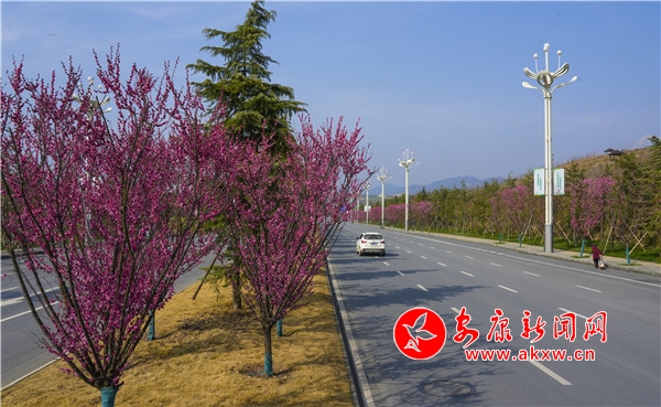 一場淅淅瀝瀝的春雨過后氣溫急劇回升,天氣回暖,伴隨著這大好天氣,安康高新區沿線的部分道路旁,粉嫩嬌艷的櫻花競相開放。一團團、一簇簇包裹著整個枝頭,蜜蜂在花間飛舞。沿路望去,密密匝匝的花朵宛如兩條粉紅色的緞帶在春風的吹拂下起舞,在路邊綠色草坪的映襯下更顯妖嬈。(圖文/李俊)PZU安康新聞網
