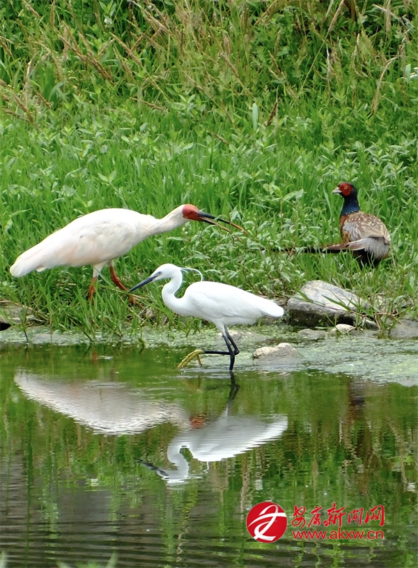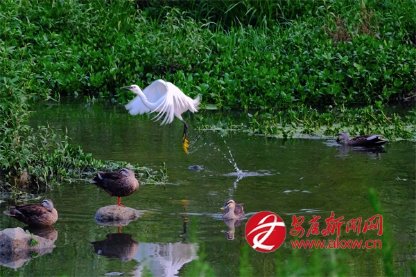 晨光熹微或夕照熔金時,朱鹮掠過荷塘,翅尖點水銜起游魚;蒼鷺與白鷺獨立淺灘,如雪影倒映清波;牛背鷺追逐耕牛腳步,驚起的草蟲成了它的盛宴;更有池鷺、黑水雞、環頸雉、白胸苦惡鳥穿梭林間,聲聲清啼與潺潺水韻交織,譜寫月河生生不息的生態樂章。5Ei安康新聞網