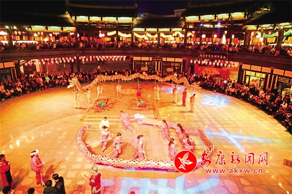 春節期間,嵐皋縣舉行了燈光秀、舞獅、采蓮船等系列民俗文化活動。陳陽 攝EVM安康新聞網