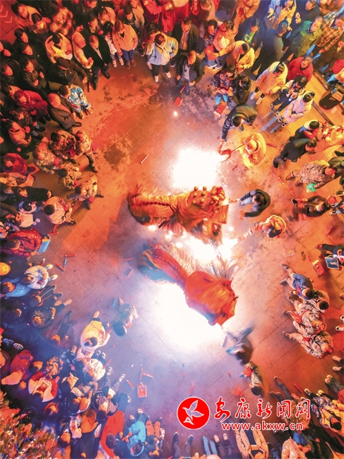 2月16日,在石泉縣秦巴風情園景區,當地民間藝人的舞龍舞獅表演,吸引了眾多市民和游客觀看欣賞。許兵 攝EVM安康新聞網