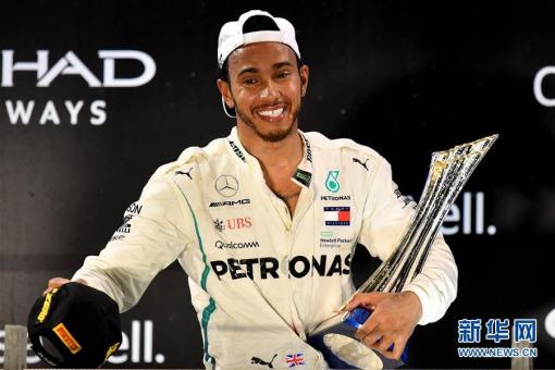 11月25日,漢密爾頓在領獎臺上慶祝奪冠。 當日,2018賽季世界一級方程式賽車錦標賽(F1)最后一站比賽在阿聯酋阿布扎比結束爭奪,梅賽德斯車隊英國車手漢密爾頓……
