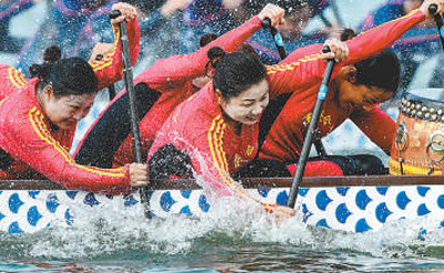 重慶隊在女子22人龍舟200米直道比賽中。W7q安康新聞網